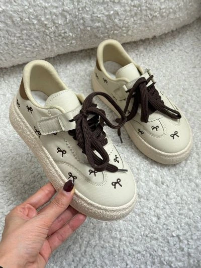 جزئیات ونس بچه گانه پاپیونی: پاپیون قرار گرفته روی این ونس، سادگی مدل اسپرت را شکسته و آن را به یک کتانی فانتزی دخترانه تبدیل میکند که برای گروه سنی 32 تا 37 بسیار محبوب است.
